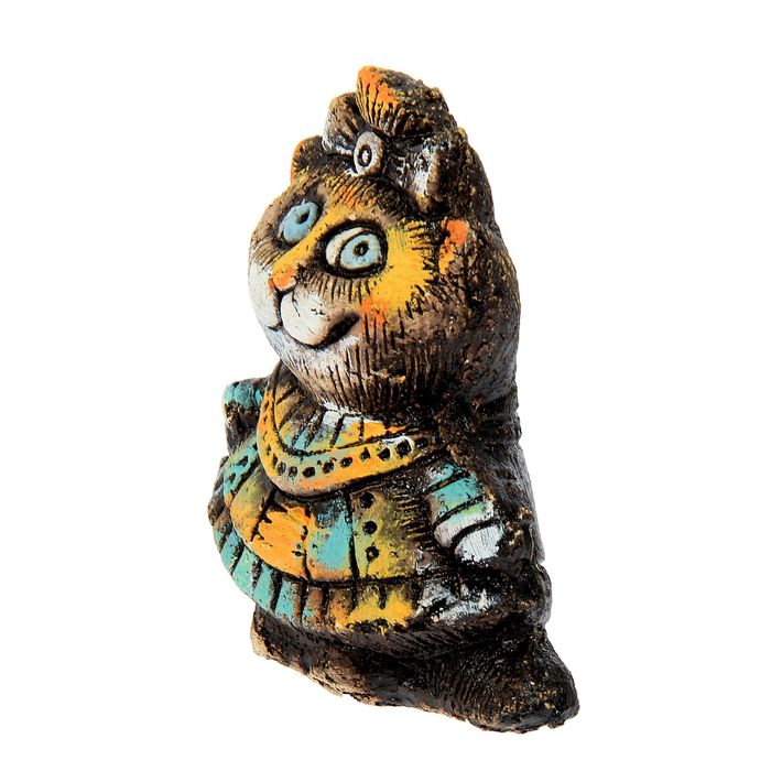 Милые декоративные фигурки всегда будут актуальным способом украсить помещение, особенно, если они сделаны в виде кошек! Взгляните на этого забавного пушистика. Сувенир выполнен из огнеупорной глины (её ещё называют шамот) и расписан мастерами вручную. Замечательная вещица поднимет вам настроение даже в ненастный день!