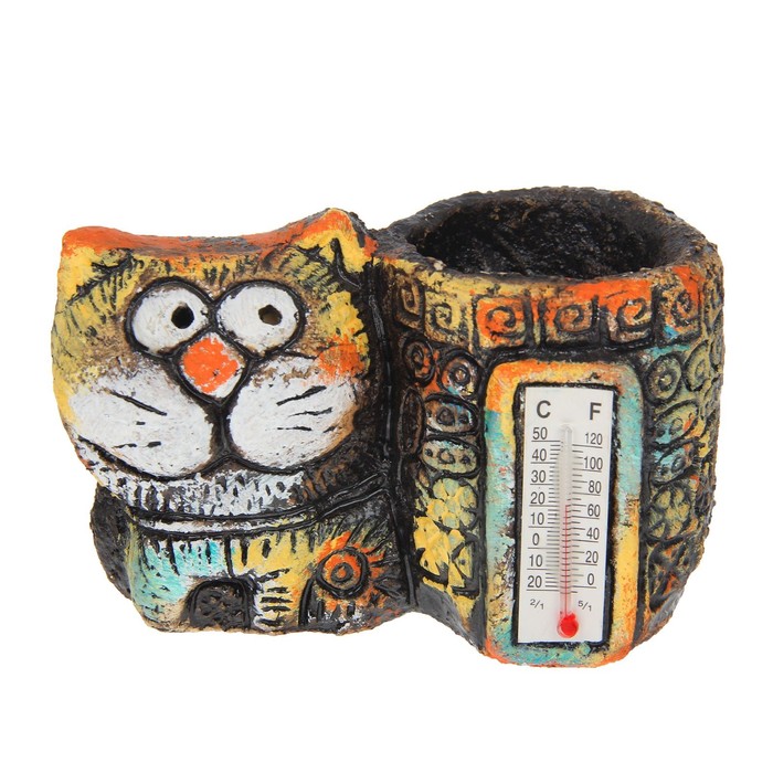 Милые декоративные фигурки всегда будут актуальным способом украсить помещение, особенно, если они сделаны в виде кошек! Взгляните на этого забавного пушистика. Сувенир выполнен из огнеупорной глины (её ещё называют шамот) и расписан мастерами вручную. Замечательная вещица поднимет вам настроение даже в ненастный день!