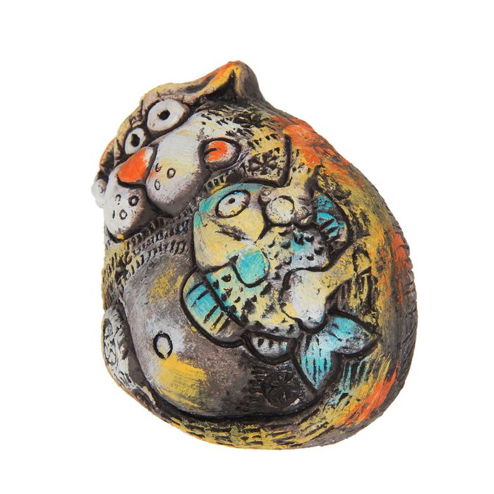 Сувенир из шамота "Кот Сытый с рыбкой"