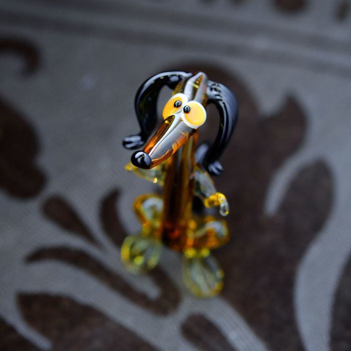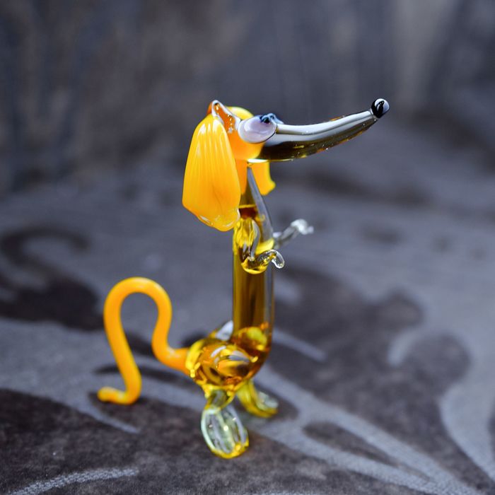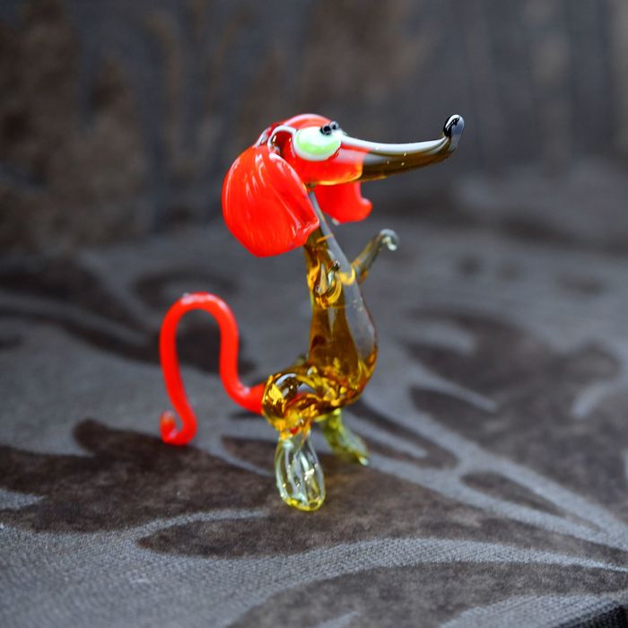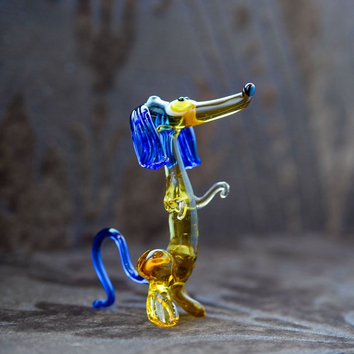 Сувенир из стекла средняя "Такса", на задних лапках, микс, 9,5 х 4 х 9,5 см