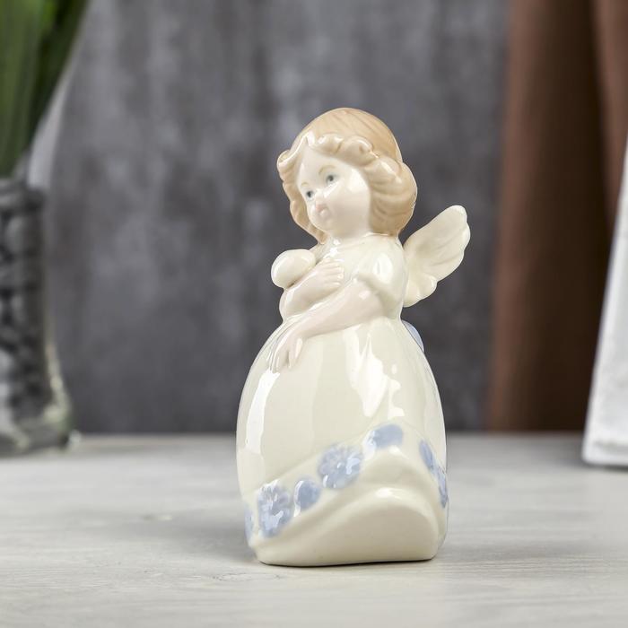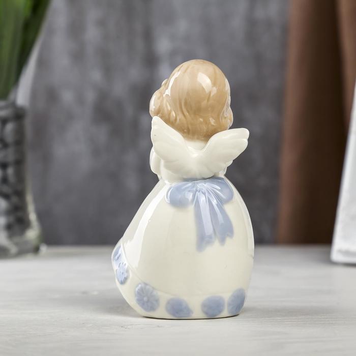 Сувенир керамика "Ангелочек с щёчками в голубом платье и с сердцем" 11,5х6,5х4,8 см
