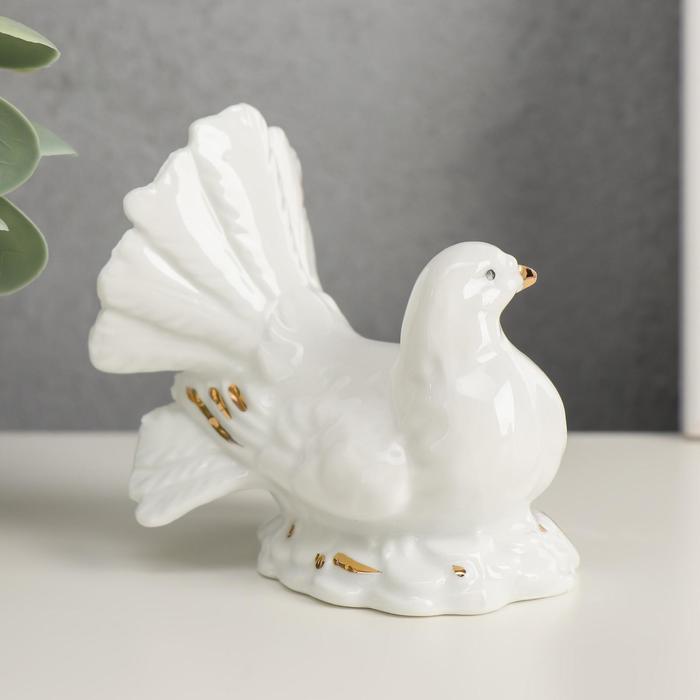 Сувенир керамика "Белоснежный голубь на монетках" 7,5х7,5х5,3 см