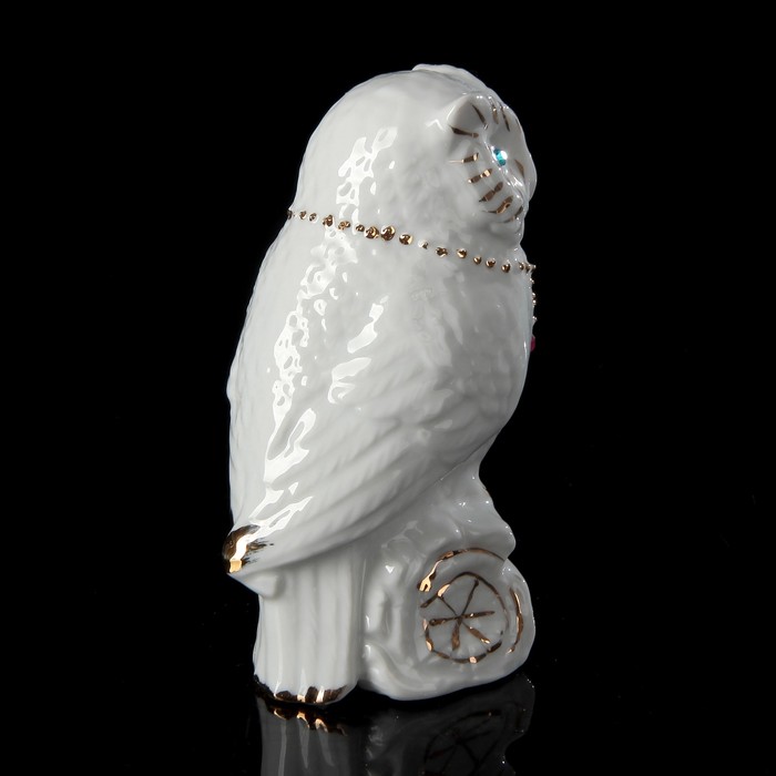 Сувенир керамика "Белый филин на бревне" стразы 11,5х6,5х6,5 см