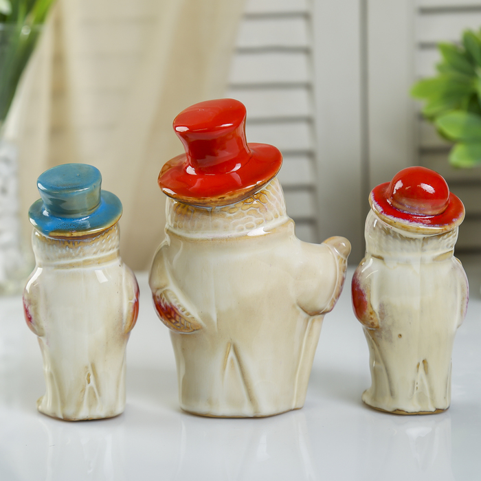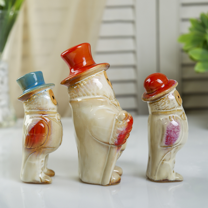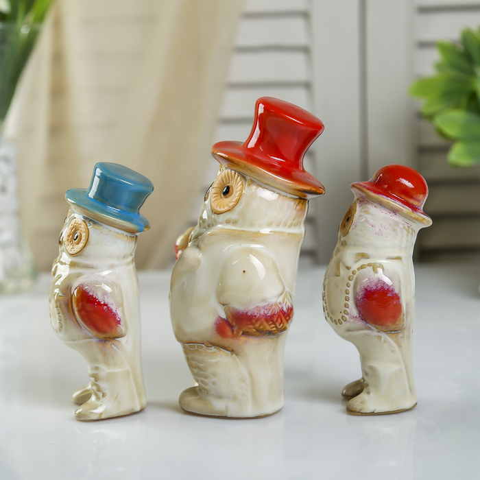 Сувенир керамика "Филины джентльмены" набор 3 шт 14х8,3х5,2 см