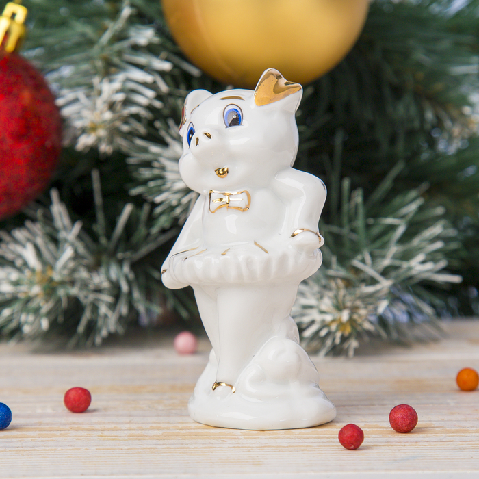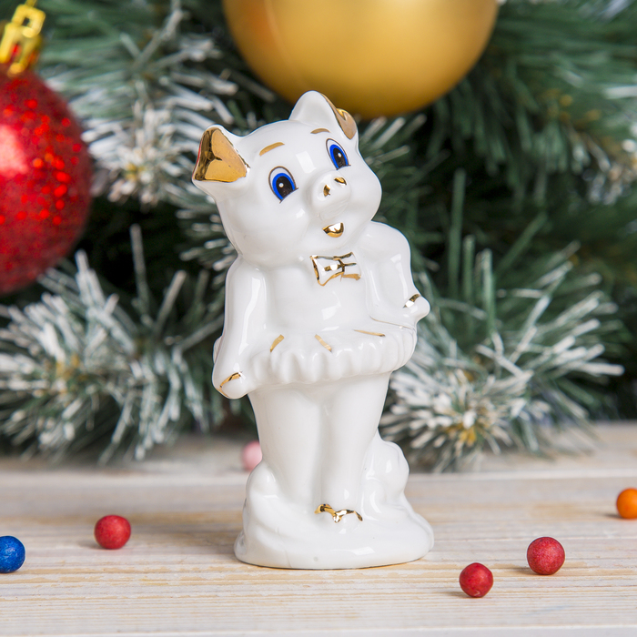 Сувенир керамика "Хрюшка-свинюшка балерина" белая с золотом МИКС 10х6х4,5 см