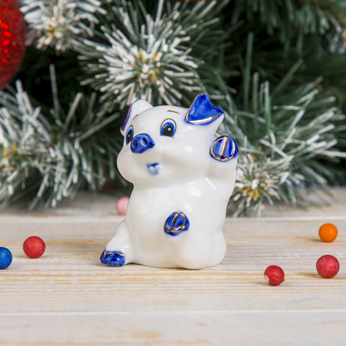 Сувенир керамика "Хрюшка-свинюшка" белая с синим МИКС 6,5х6х4,5 см