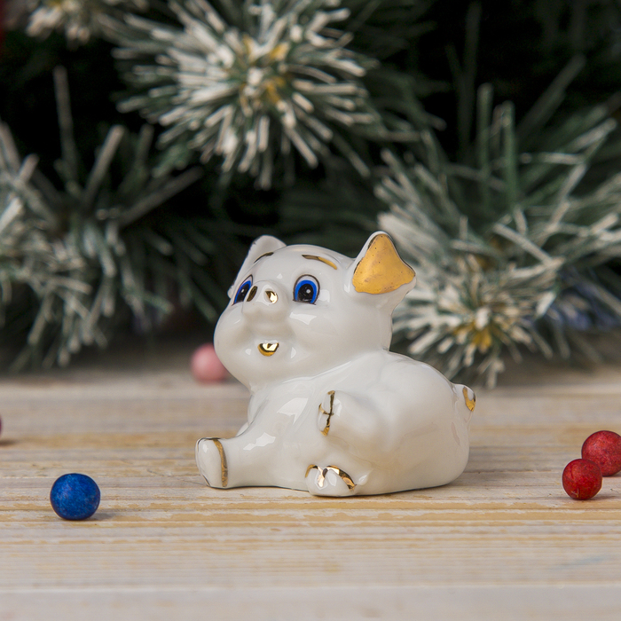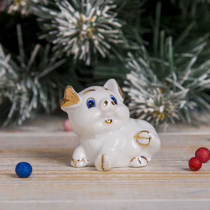 Сувенир керамика "Хрюшка-свинюшка" белая с золотом МИКС 5,5х4х4,5 см