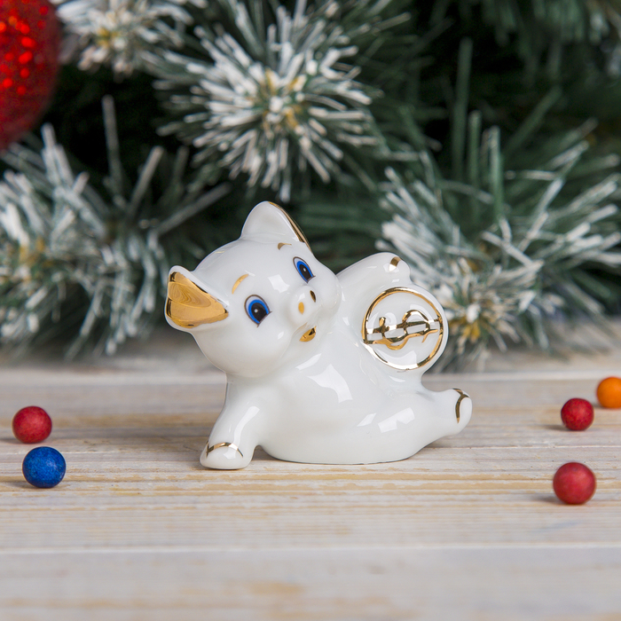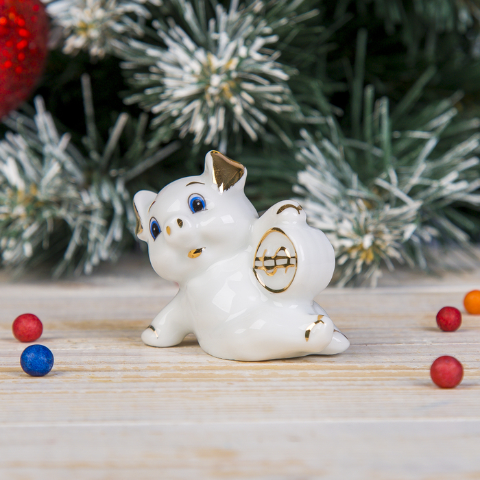Сувенир керамика "Хрюшка-свинюшка с монетой" белая с золотом МИКС 6х6х3,5 см