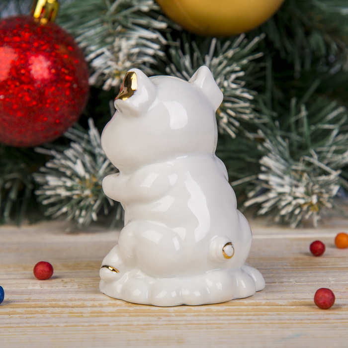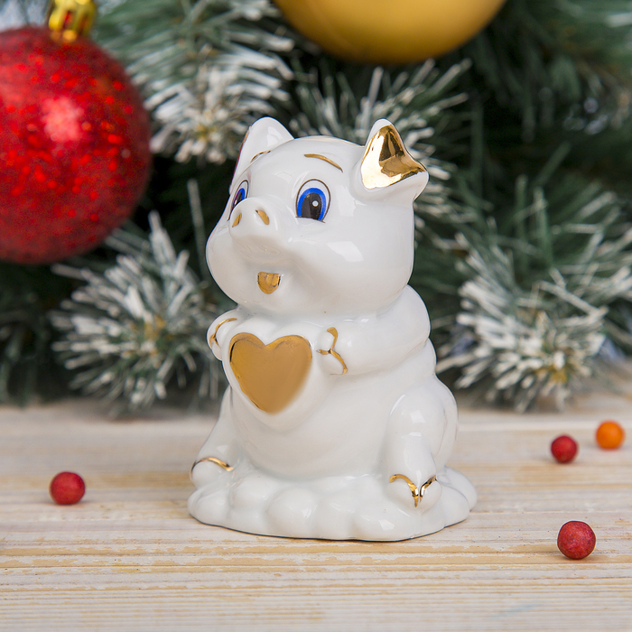 Сувенир керамика "Хрюшка-свинюшка с сердечком" белая с золотом 9х6х6 см