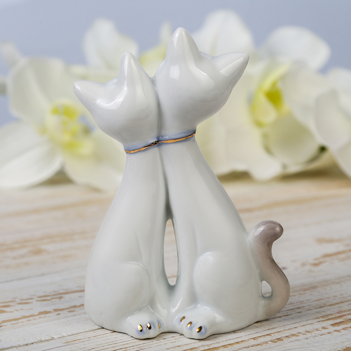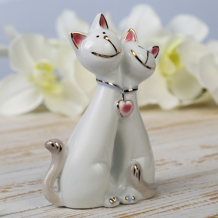 Сувенир керамика "Кот и кошка с сердечком" цветные 13х9,5х5 см