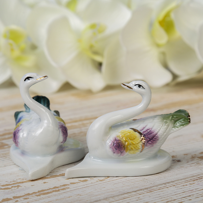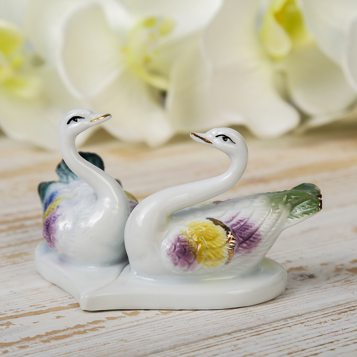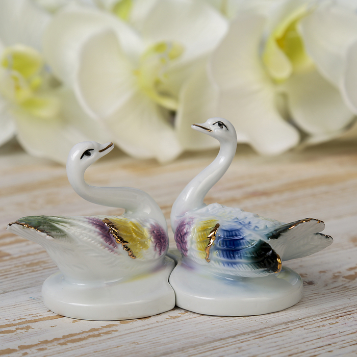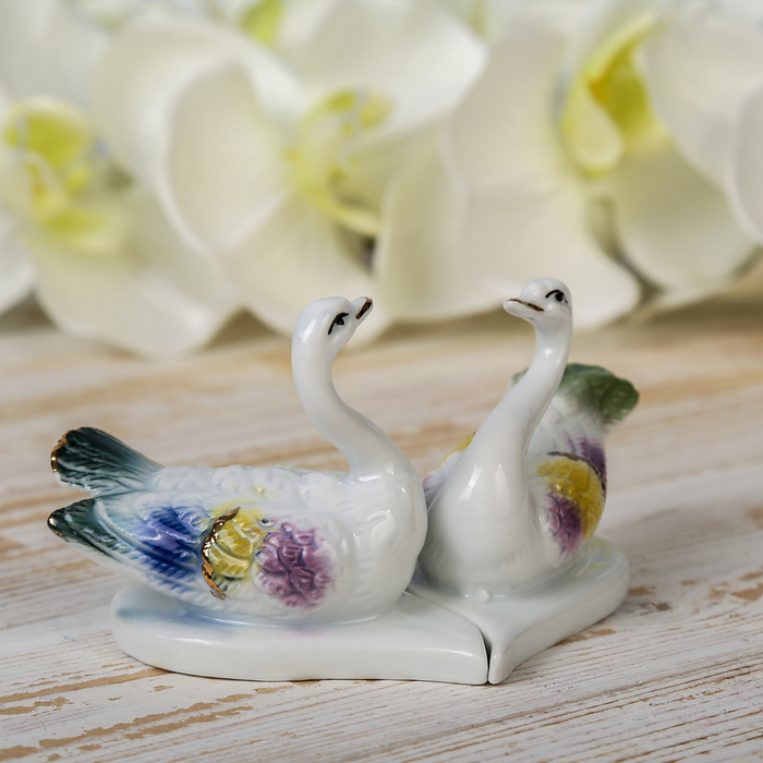 Сувенир керамика "Лебёдушки на сердце" набор 2 шт цветные 7х12,5х8 см
