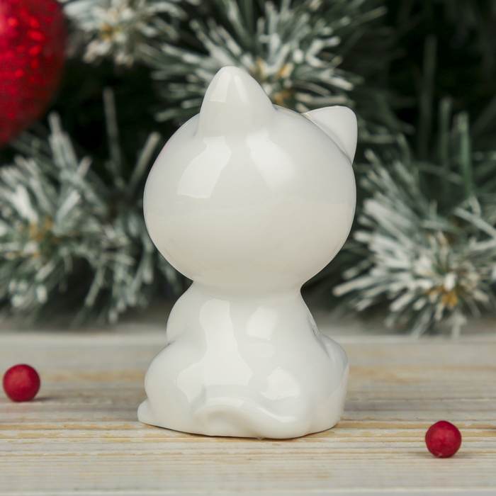 Сувенир керамика "Маленький белый котёнок с сердечком" 7х4,5х4 см