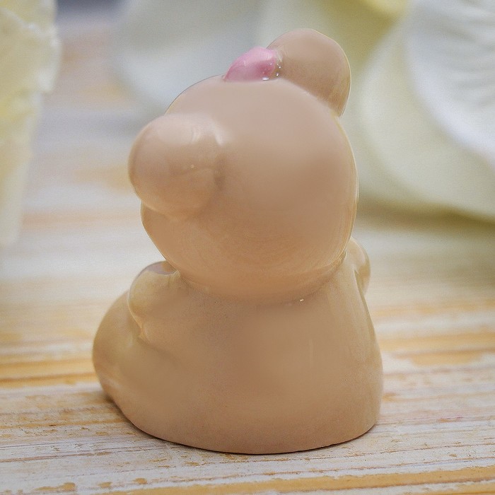 Сувенир керамика "Медвежонок с розовым бантом и сердцем" 6х4,5х3,8 см
