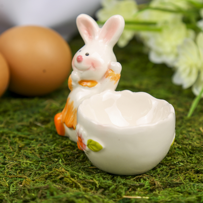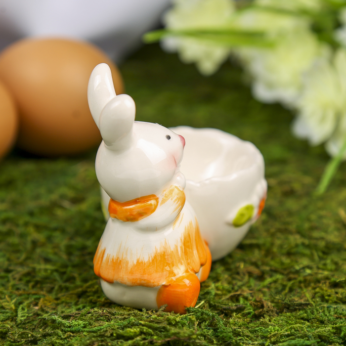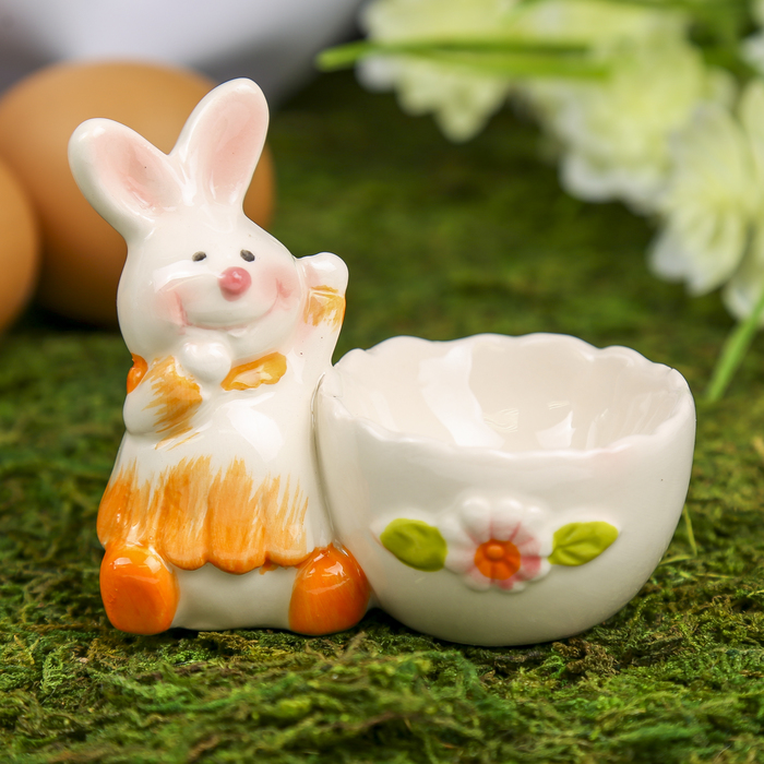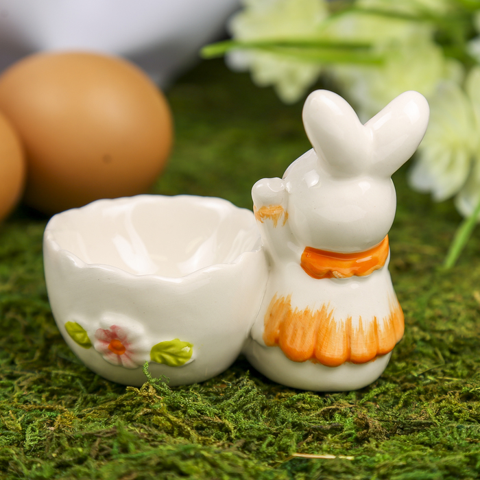 Сувенир керамика подставка под яйцо "Зайка в ярком платьице" МИКС 8х8,5х5,2 см