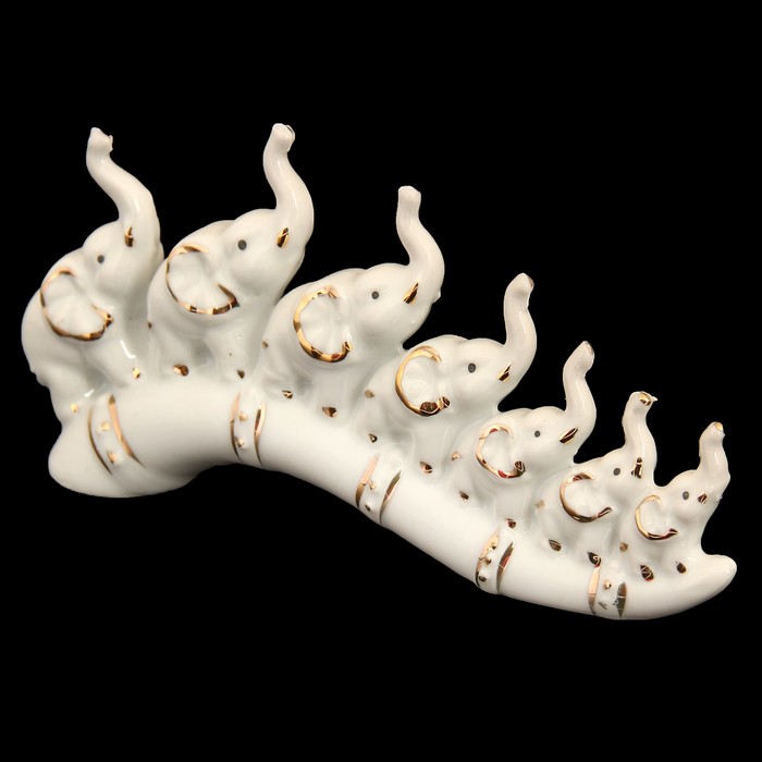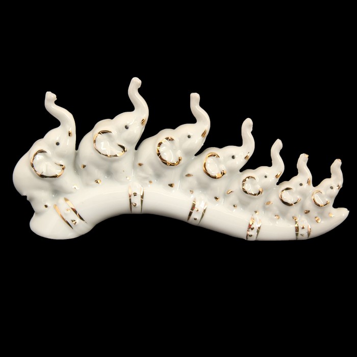 Сувенир керамика "Семь слонов на бивне" белые с золотом 8х16х3 см