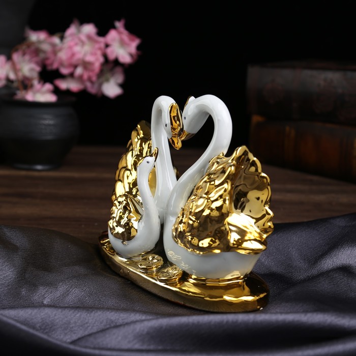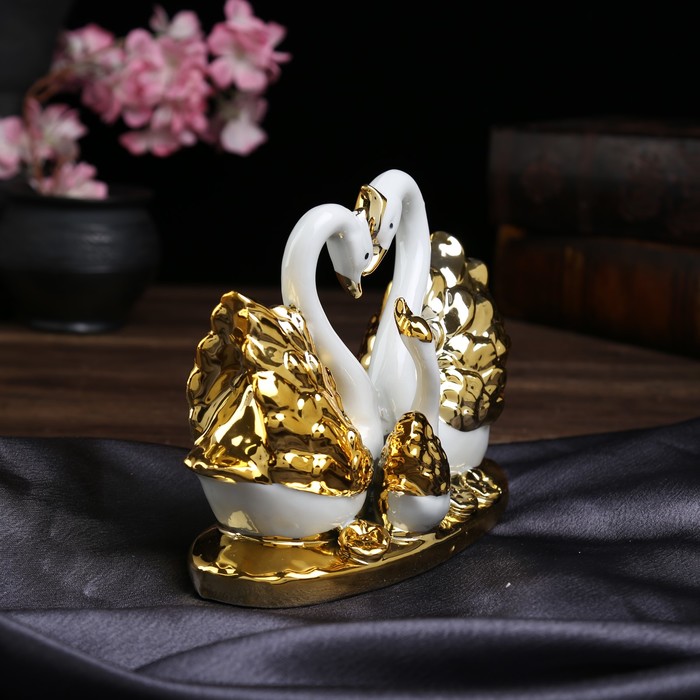 Сувенир керамика "Семейство белых лебедей с золотым оперением" 14,3х19х9,5 см