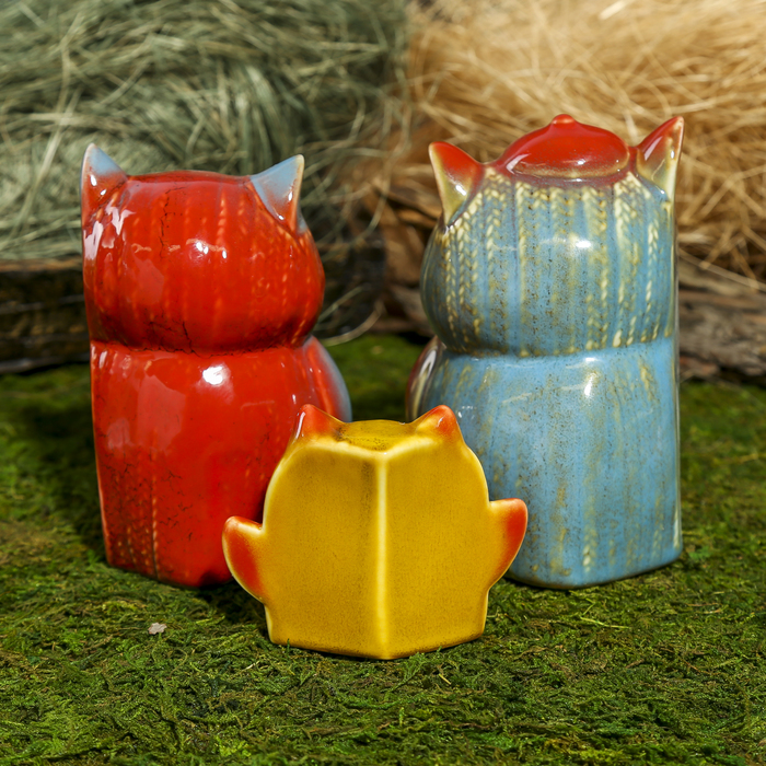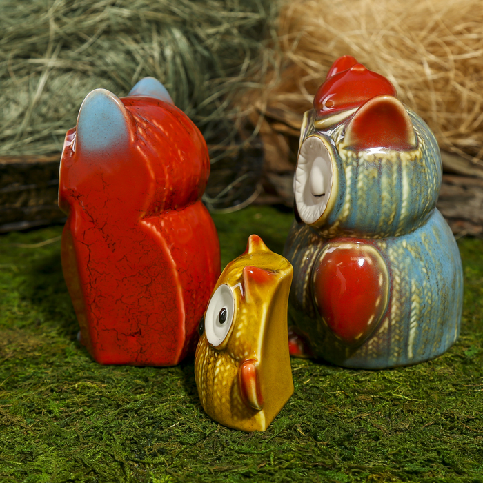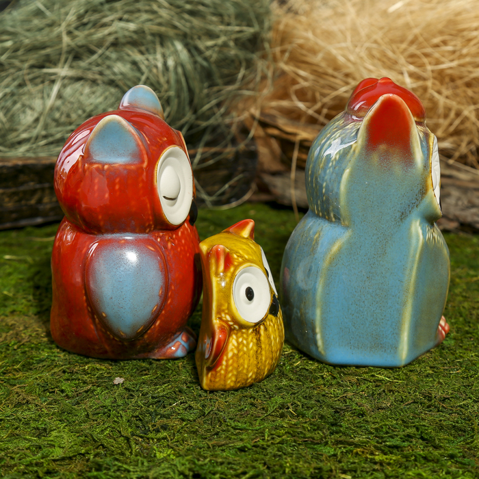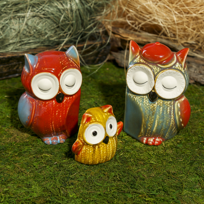 Сувенир керамика "Семейство филинов - вязаные" набор 3 шт 13х18х12 см