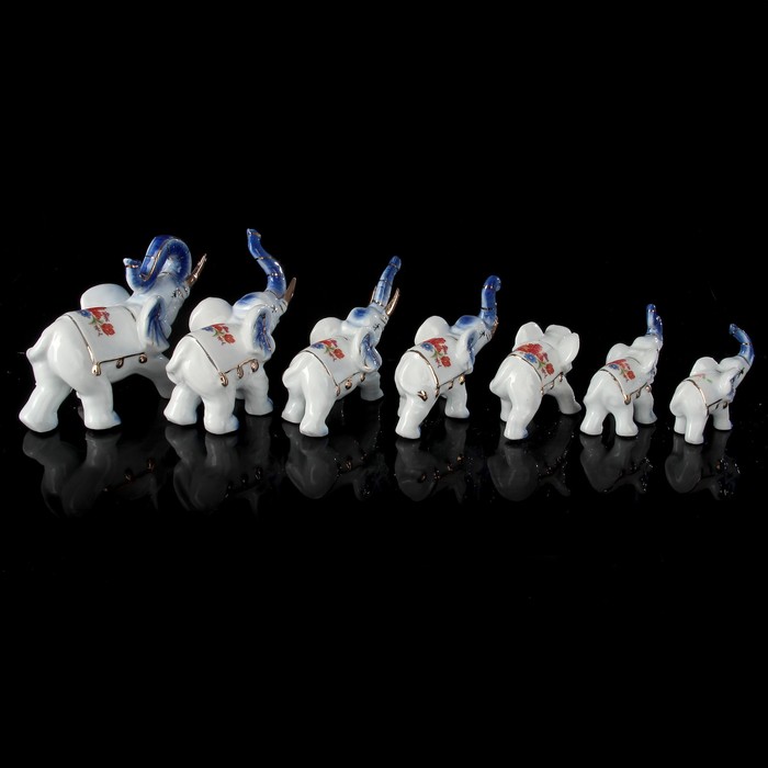 Сувенир керамика "Слоны в попоне в цветах" набор 7 шт h=9,5 7,8 7 6,3 4,8 5 см