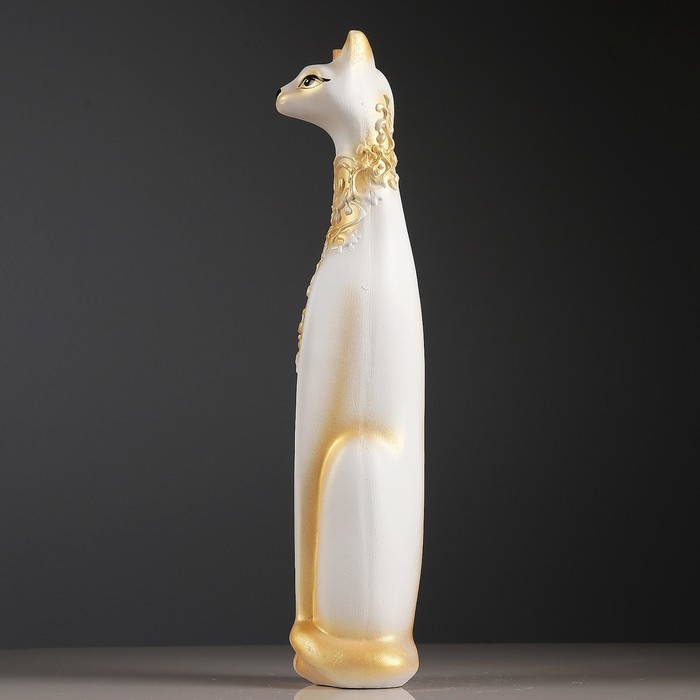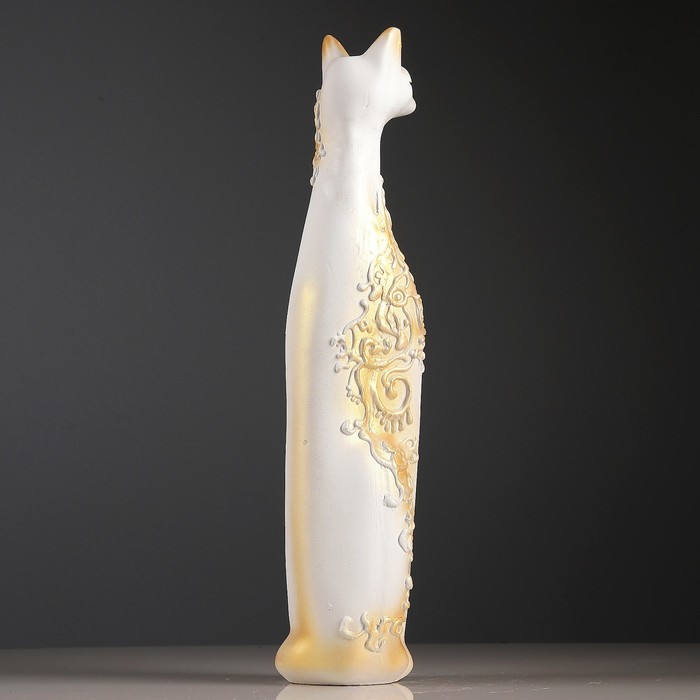 Сувенир "Кошка Египетская" орнамент, с открытыми глазами, белая с серебром