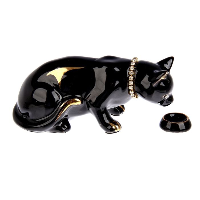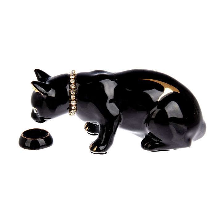 Сувенир "Кошка с миской" черный, со стразами