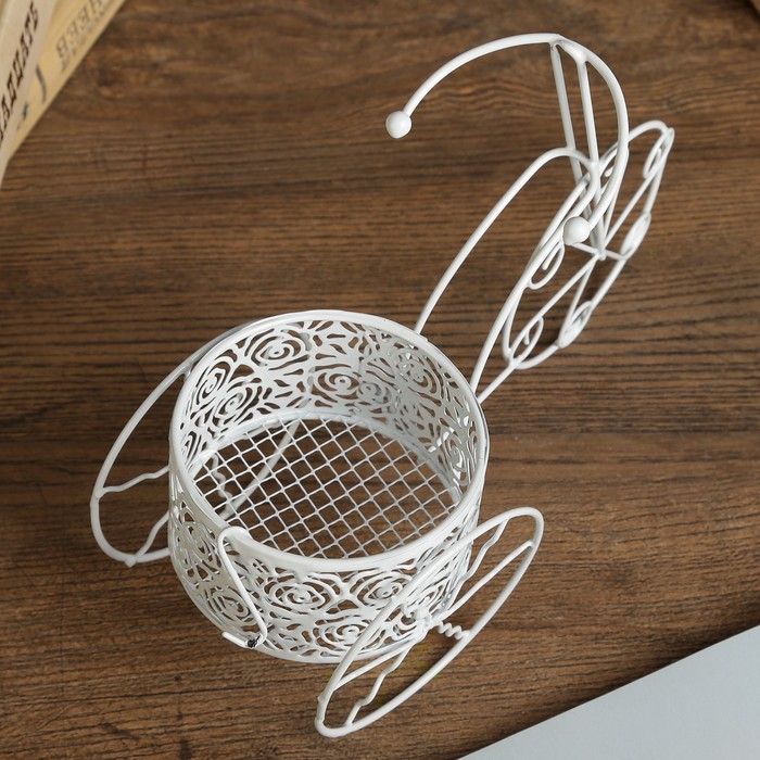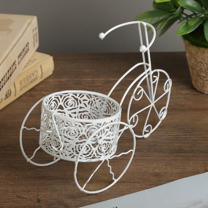 Сувенир металл "Велосипед трёхколёсный ажурные цветы" белый 15х20х8 см