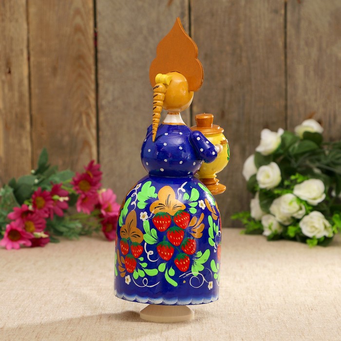 Сувенир музыкальный «Барыня с самоваром», синее платье, золотой кокошник, 20 см