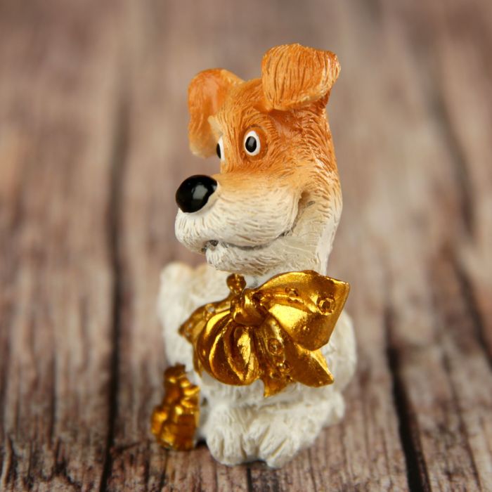 Сувенир "Пёсик Макс с золотым бантом и монетками", МИКС