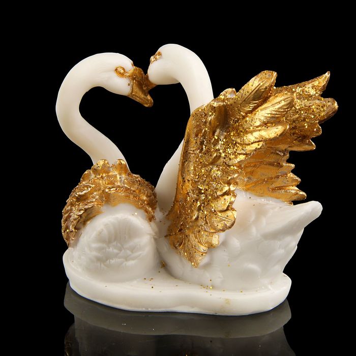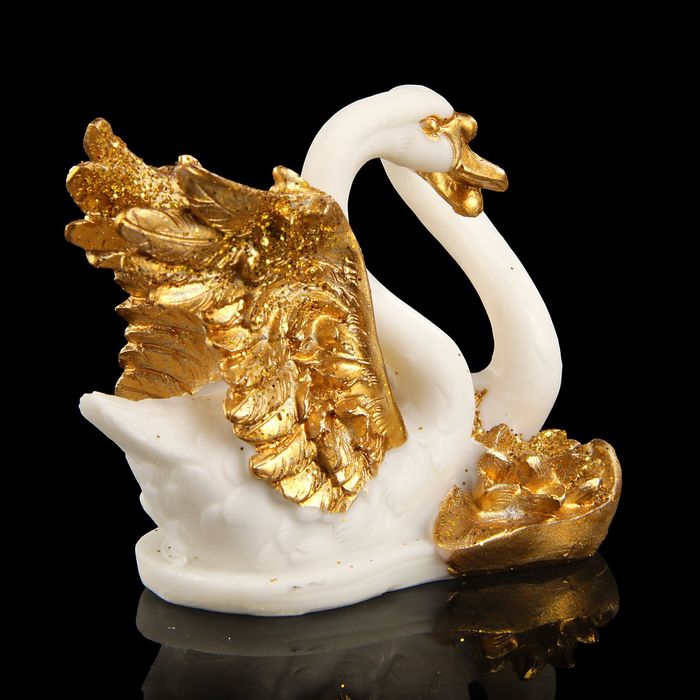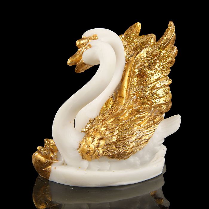 Сувенир полистоун "2 лебедя с золотыми крыльями у лотоса" 8,5х5х7 см