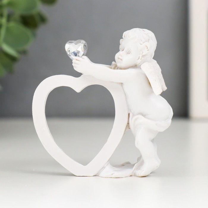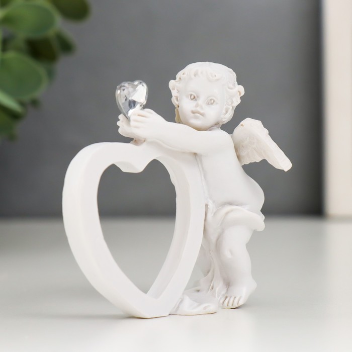 Сувенир полистоун "Ангел белоснежный с сердцем и кристаллом" МИКС 6,5х6,5х4,5 см