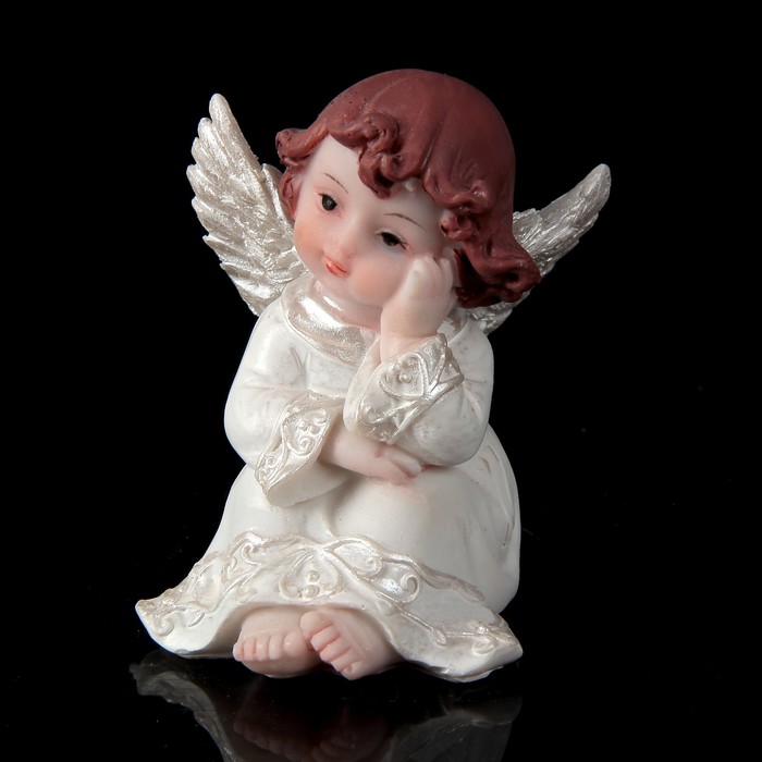 Сувенир полистоун "Ангел в белоснежном платье с жемчужными крыльями сидит"МИКС 8х5,5х5,5см