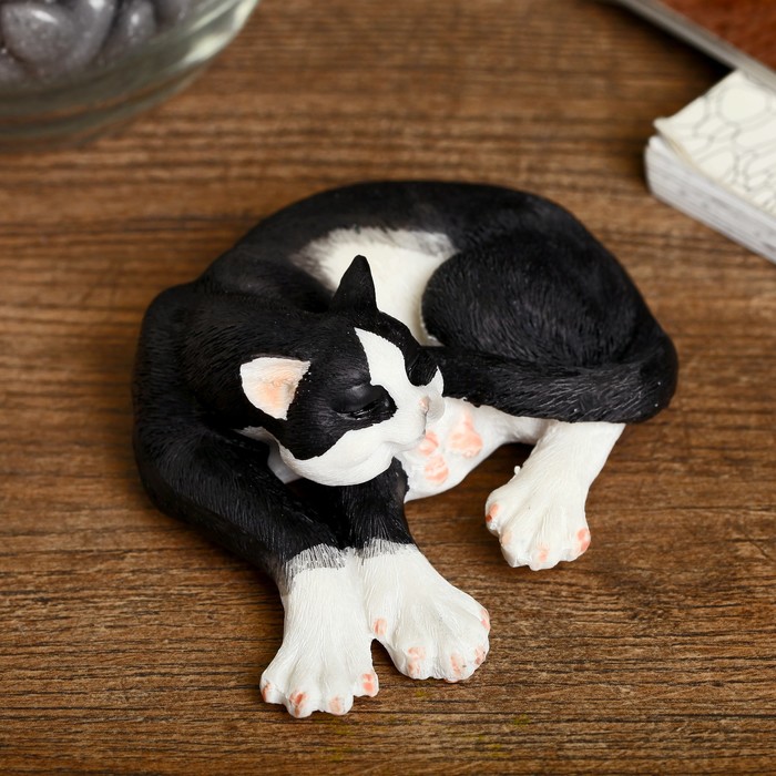 Сувенир полистоун "Черно-белый кот Феликс спит" 4х10х7,5 см