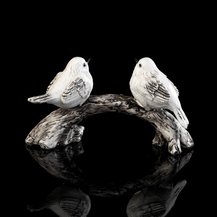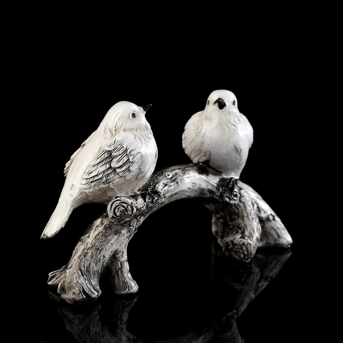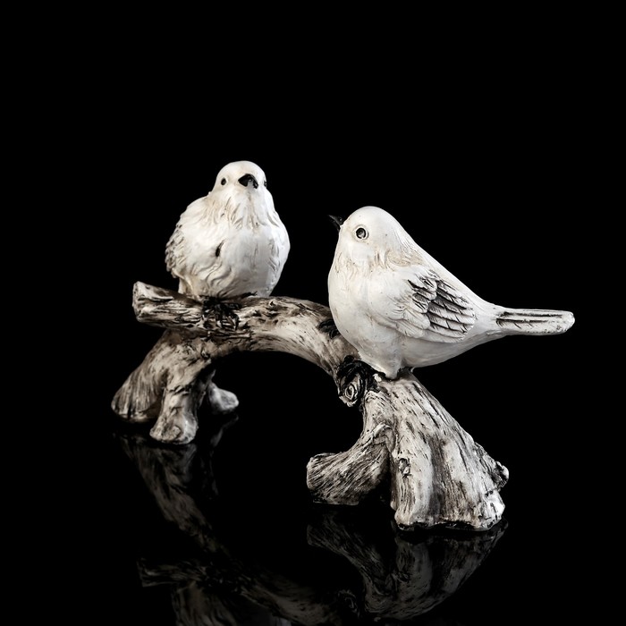 Сувенир полистоун "Два белых воробышка на коряге" 10х18,5х7 см