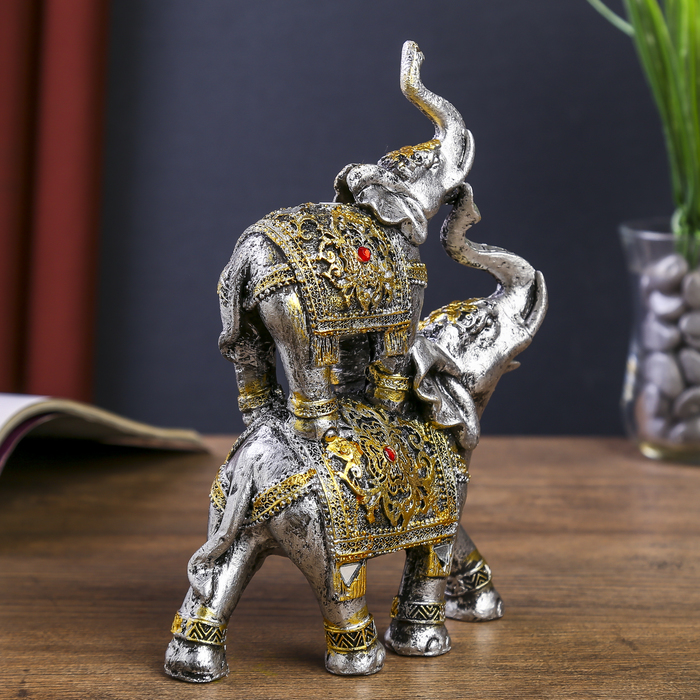Сувенир полистоун "Два слоника в золотых попонах с рубином" 18х12х5 см