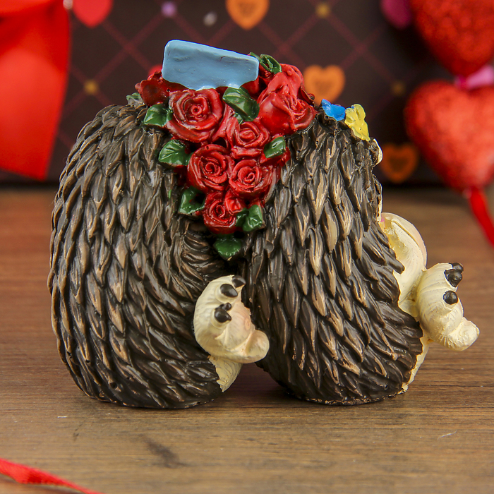 Сувенир полистоун "Ёжики-романтики с букетом роз" 7,8х9х6,5 см