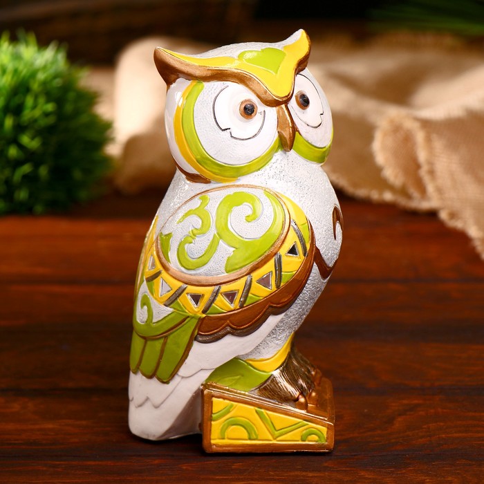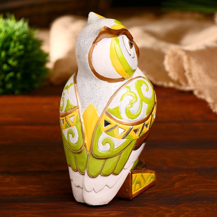 Сувенир полистоун "Филин расписной жёлто-зелёный" 19х10х10 см