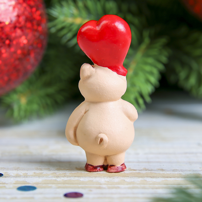 Сувенир полистоун "Хрюндель с шариком-сердцем" 5,5х2,5х2,5 см