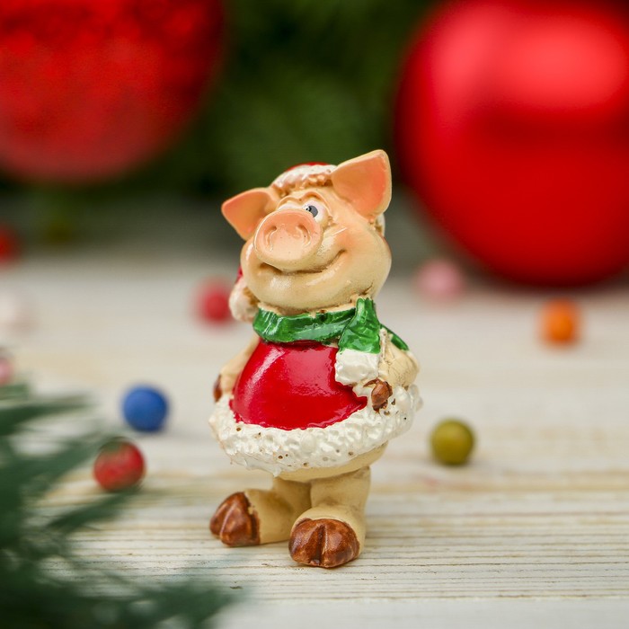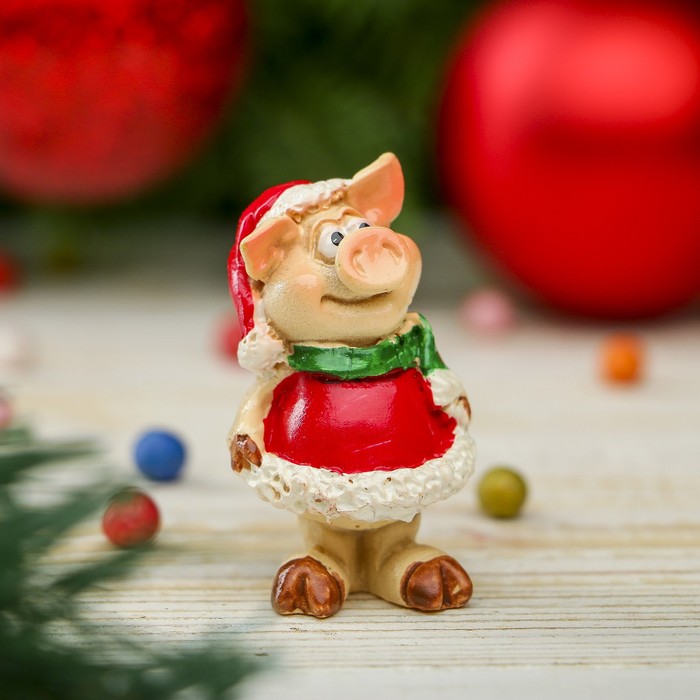 Сувенир полистоун "Хрюндель в костюме Деда Мороза" МИКС 5,5х3,3х3 см