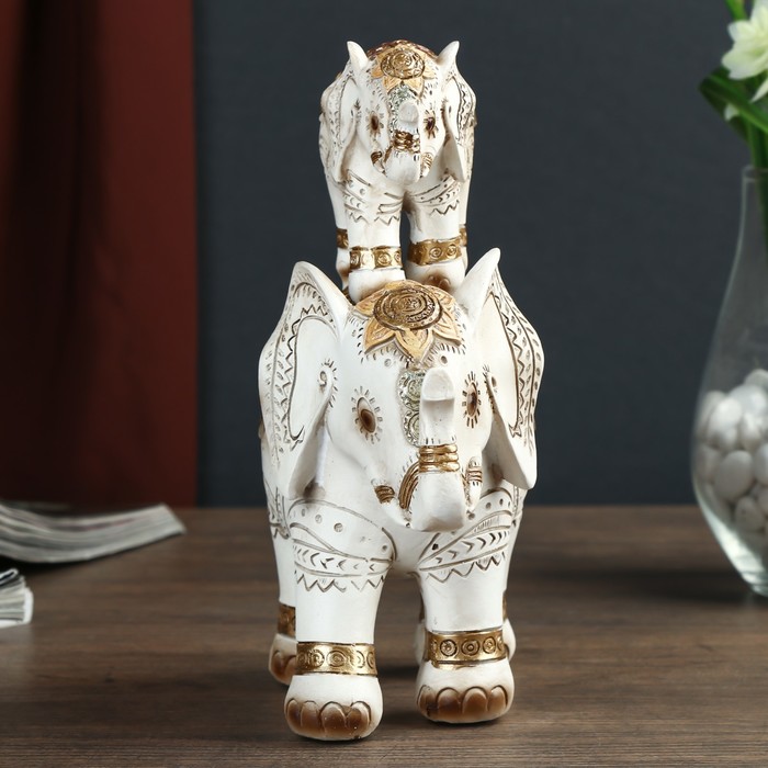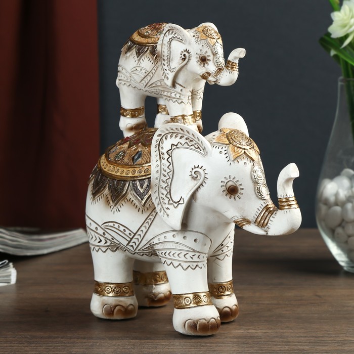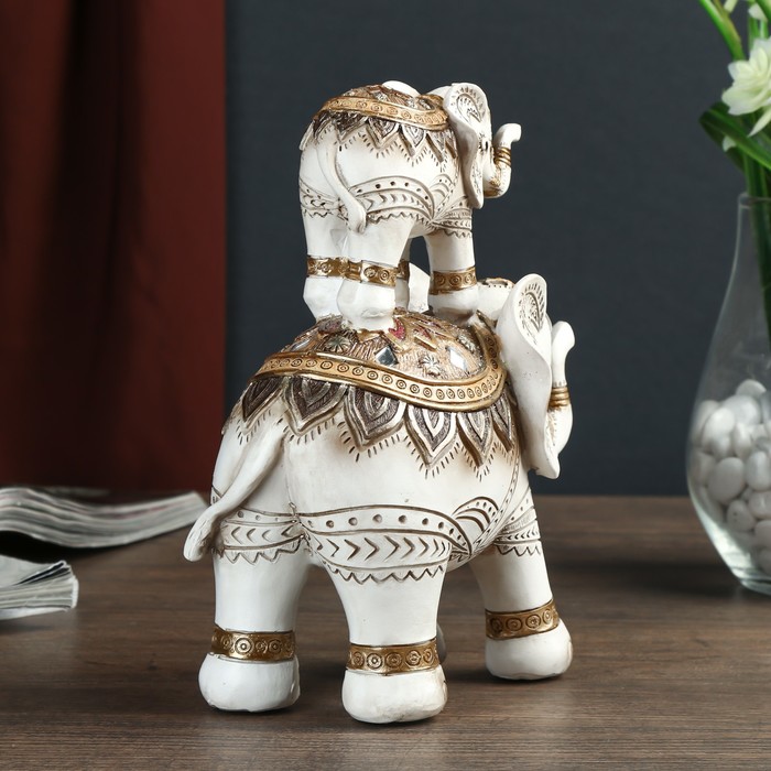 Хотите пожелать близким успеха и процветания? Вручите им фигурку слона! Ведь именно это благородное животное в странах Азии и Африки является символом благополучия и стабильности. Считается, что слон привлекает в дом положительную энергию. Поставьте его на подоконник, так, чтобы он смотрел на улицу. Сувенир полистоун "Индийские слоны в оранжево-серой попоне - пирамида" 18,8х17х8 см украсит собой окружающее пространство, добавив ему этнический колорит.