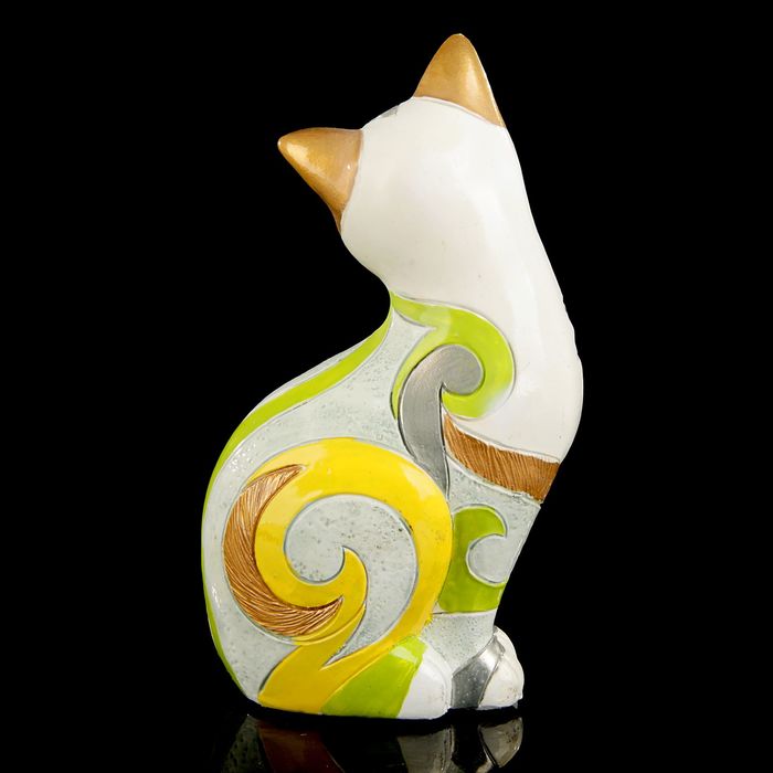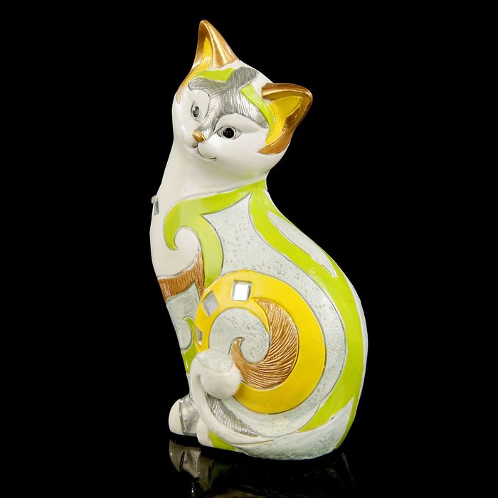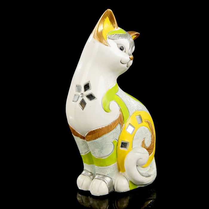 Сувенир полистоун "Кошка расписная жёлто-зелёная" 17х9х6 см