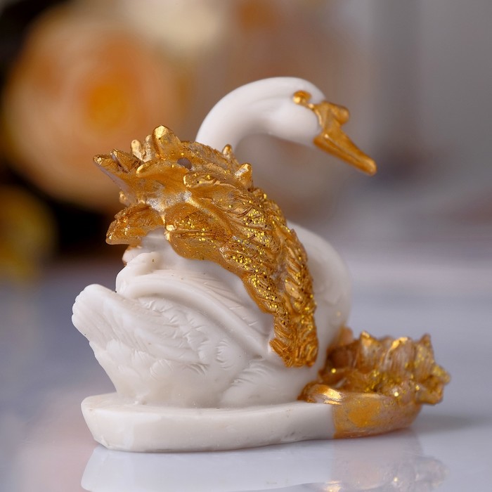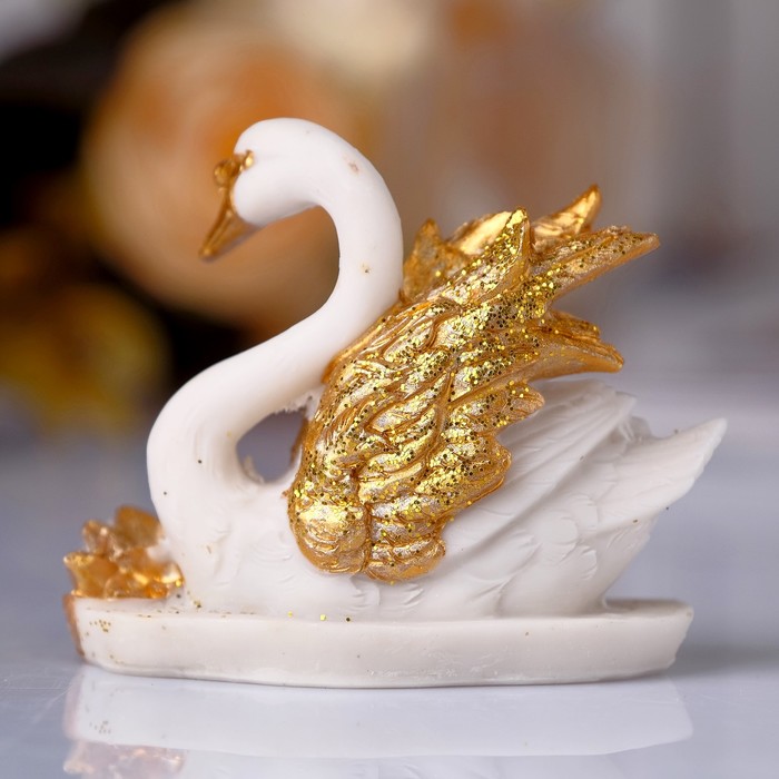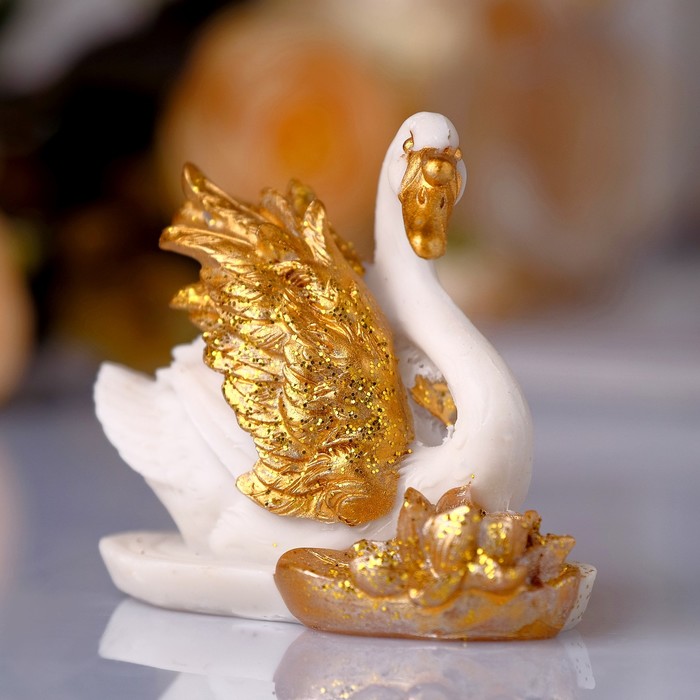 Сувенир полистоун "Лебедь с золотыми крыльями у лотоса" 7,5х6х4 см
