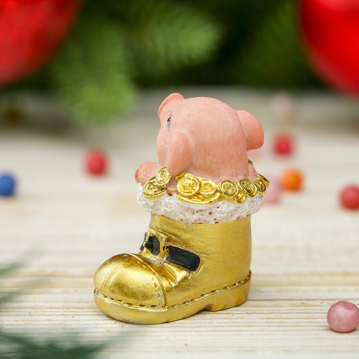 Сувенир полистоун "Молочный поросёнок в сапоге/ведёрке - Удачи" МИКС 5х3,3х4,3 см