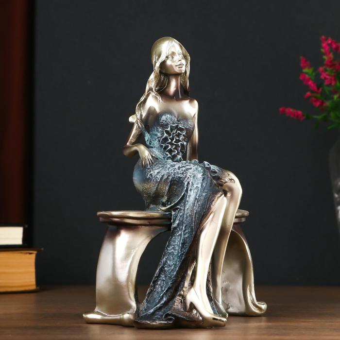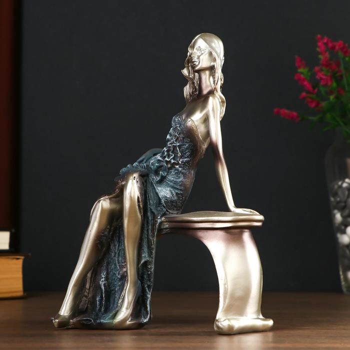 Сувенир полистоун "Молодая девушка в платье с рюшами на банкетке" 24,3х16,7х12 см
