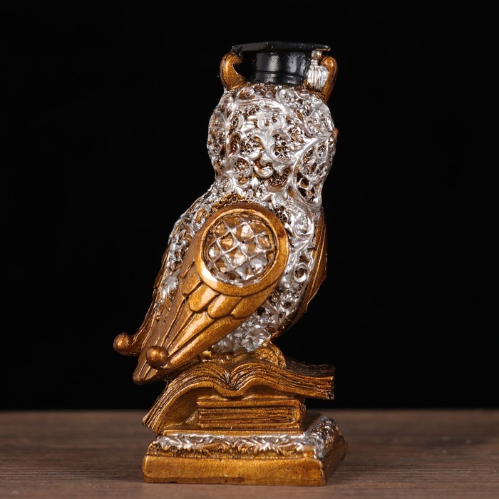 Сувенир полистоун "Мудрый филин на книгах" с зеркальными ромбами МИКС 8,8х4,5х3,9 см