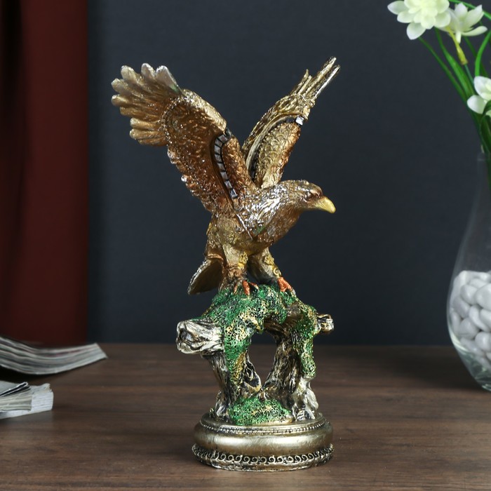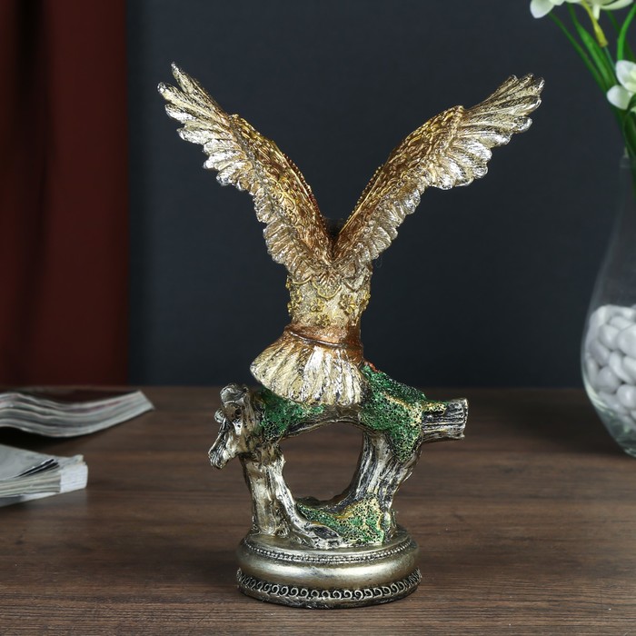 Сувенир полистоун "Орёл с золотыми крыльями на коряге" 19,5х13,5х9,5 см