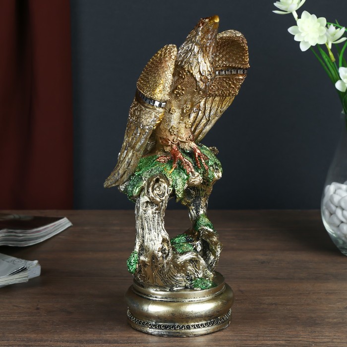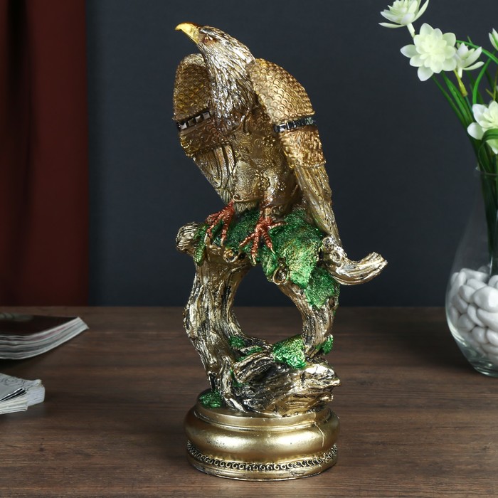 Сувенир полистоун "Орёл с золотыми крыльями на старом дереве" 25,7х13х9 см