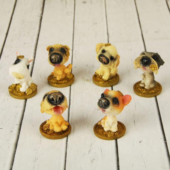 Сувенир полистоун "Пёсик на золотой монете" МИКС 5х3,3х3 см