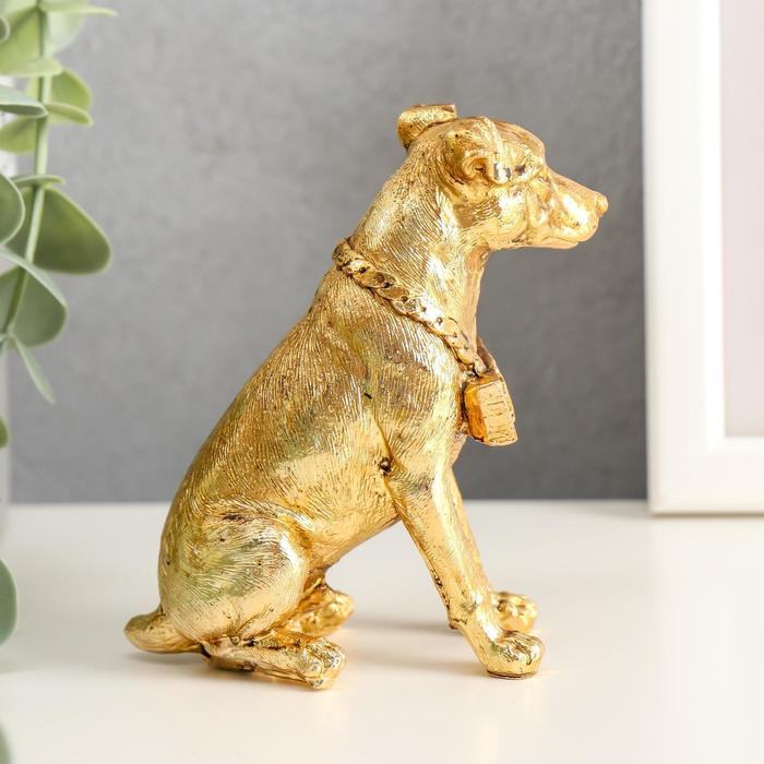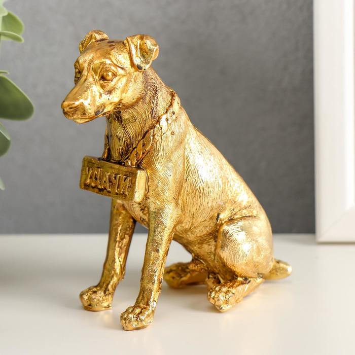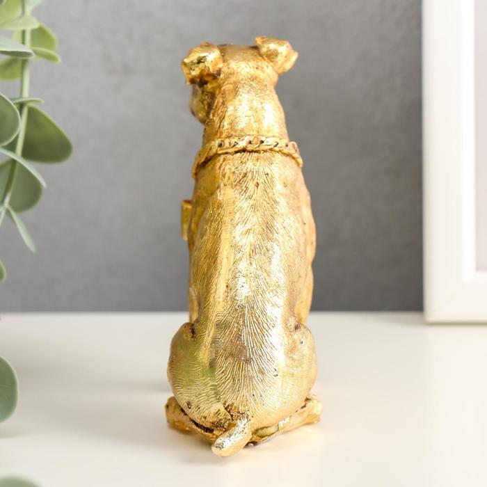 Сувенир полистоун "Пёсик с вывеской на шее - Удачи" золото 10,5х10,5х4,5 см