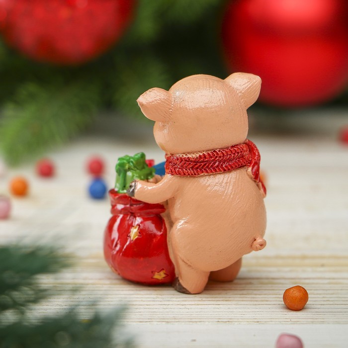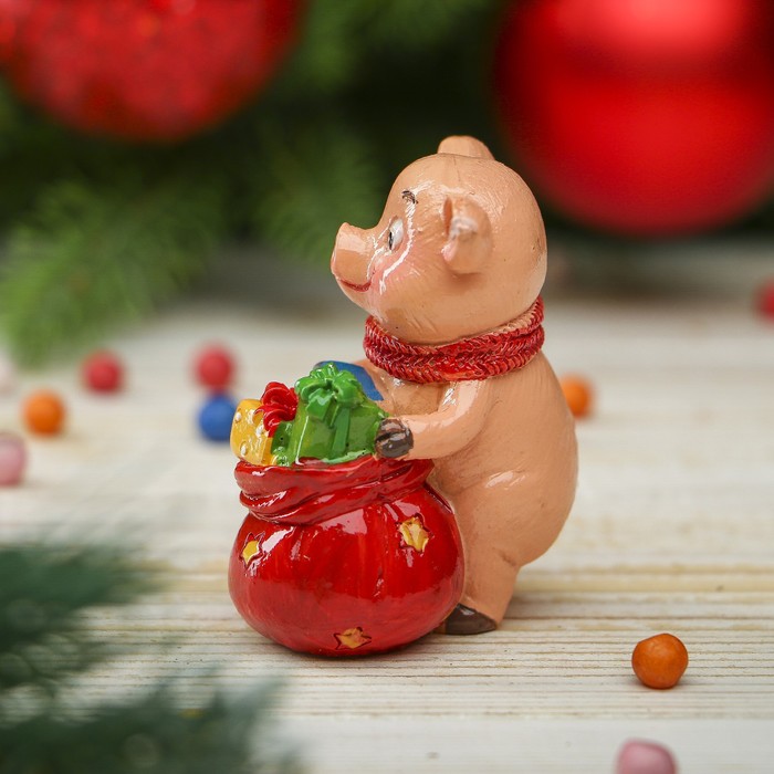 Сувенир полистоун "Поросёнок Тоша с мешков подарков" h=6 см
