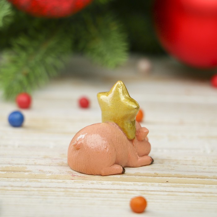 Сувенир полистоун "Поросёнок Тоша со звездой" h=3,5 см