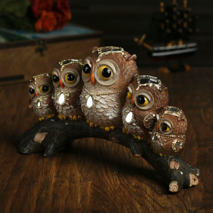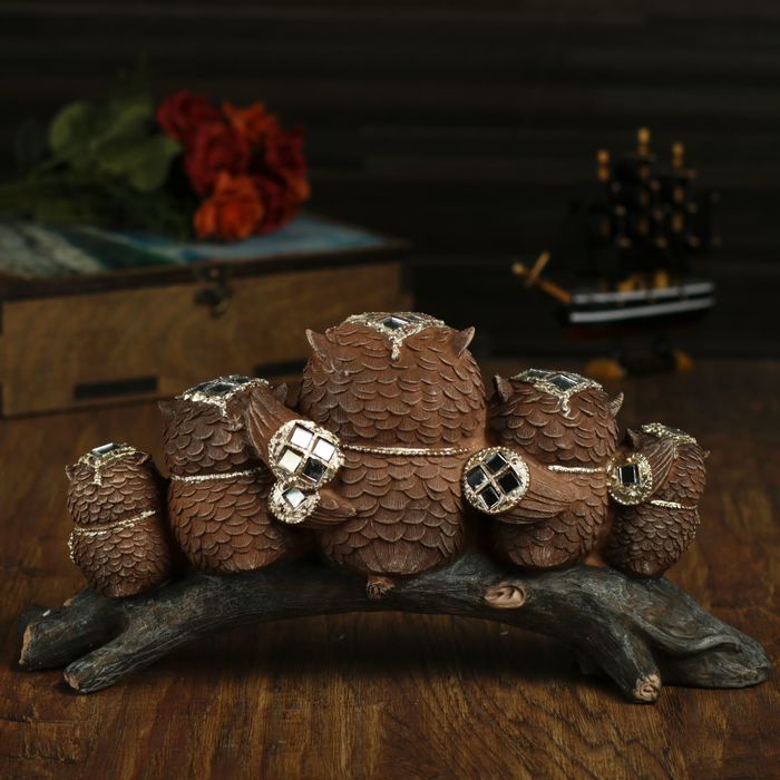 Сувенир полистоун "Пять совушек на коряге" 16,5х33х8,5 см